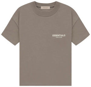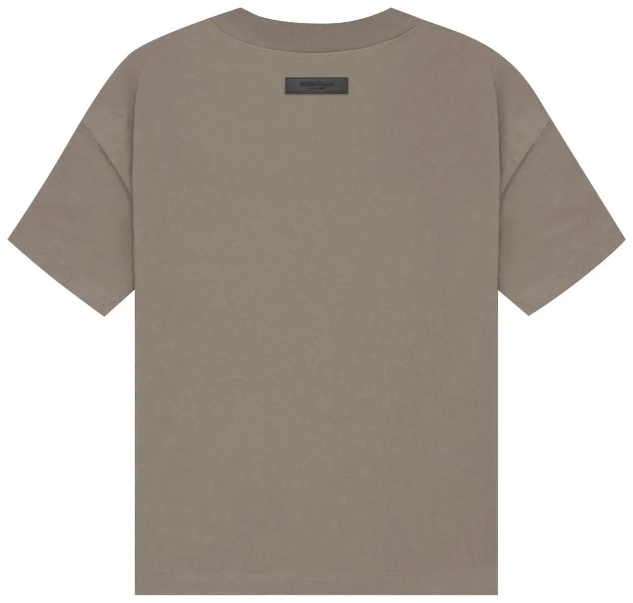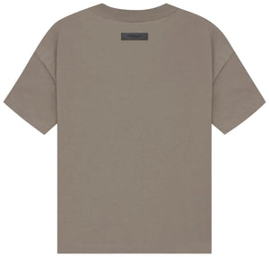 The Fear of God Essentials Tee 'Desert Taupe' is from the brand's SS22 collection. The muted colorway is accented with a white logo on the front left chest and a small rubber patch logo on the back.