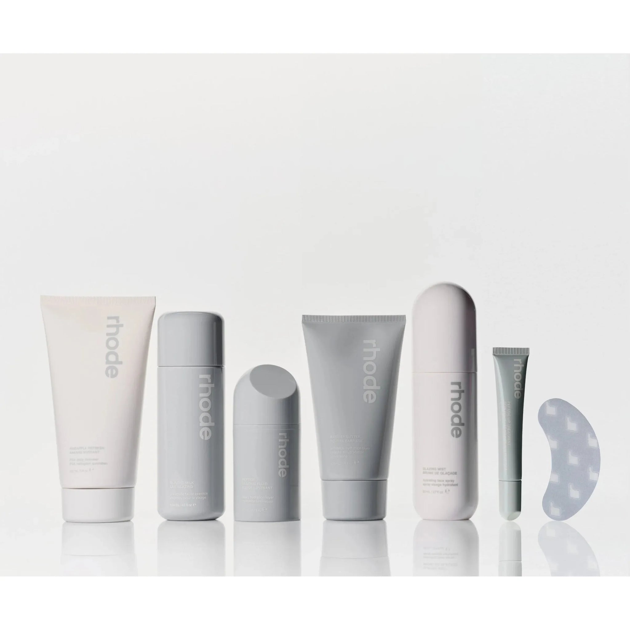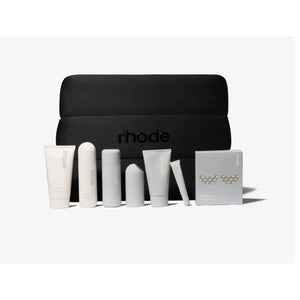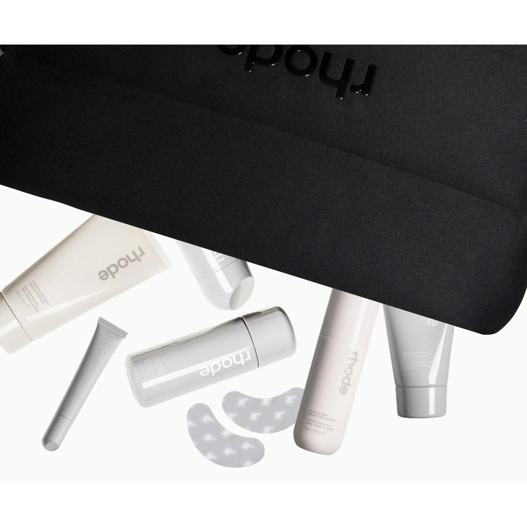 A limited edition version of our signature rhode kit, featuring even more skincare essentials in the Oversized Bubble Bag. Each tried-and-true formula nourishes your barrier, feels dreamy on your skin, and multitasks in your routine. Reach for them morning and night, use solo or with other skincare, mix with makeup, and take on your travels.