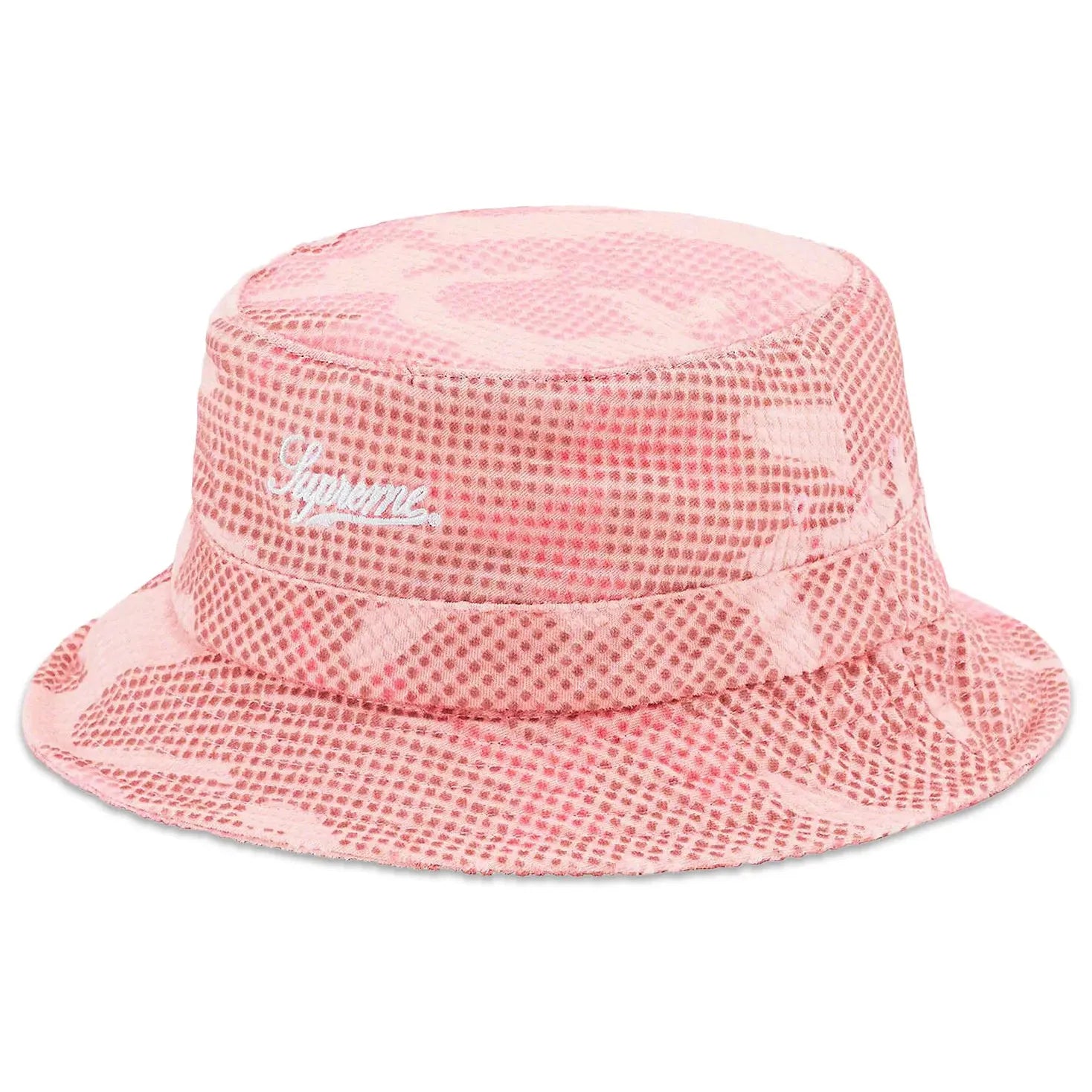 Cotton blend velvet crusher with printed camo and embossed grid pattern. Embroidered logo on front.