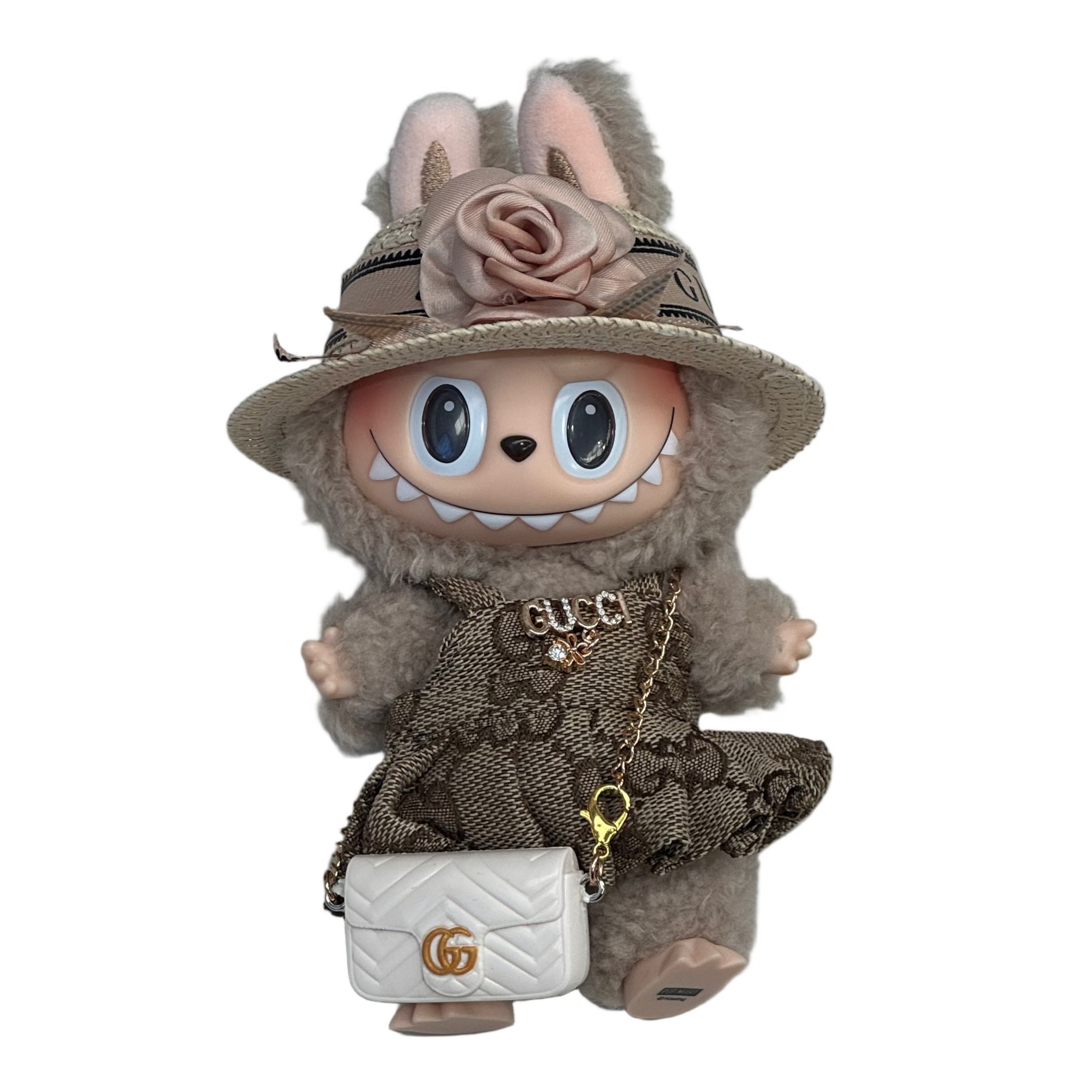 Gucci Inspired Labubu Outfit. Includes:* Sunhat* Dress* Bag