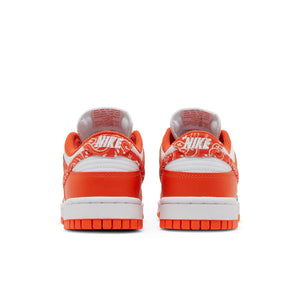 The Nike women’s Dunk Low ‘Orange Paisley’ updates the retro hoops shoe with a zesty citrus hue and refreshed branding. The upper is crafted from smooth white leather with contrasting orange overlays at the forefoot and heel. Cutting through the side panels, a textile Swoosh features an orange and white paisley print for an added dose of street style. A low-cut padded collar combines with a breathable nylon tongue to deliver a comfortable fit.