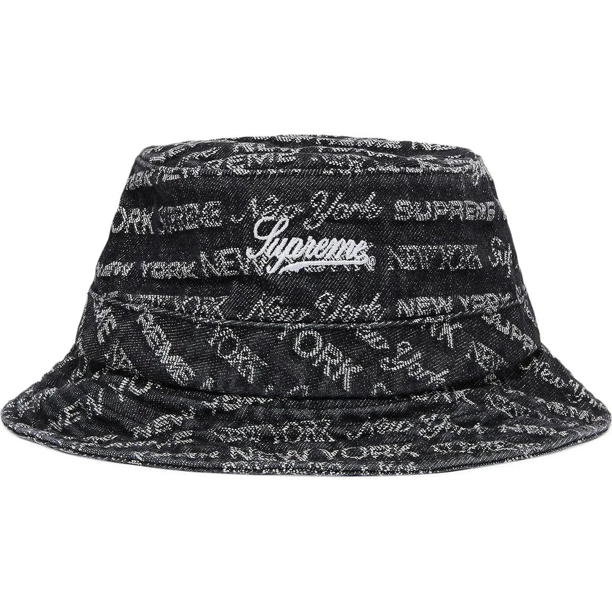 All cotton 14 oz. denim crusher with jacquard woven logo pattern. Embroidered logos on front.