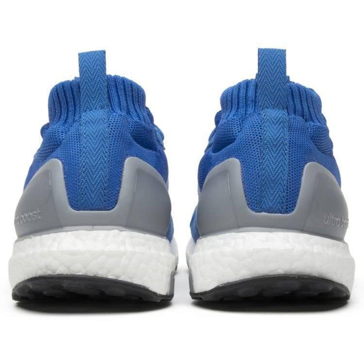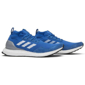 Released in July of 2017, this Ultra Boost Mid 'Run Thru Time' sneaker references classic silhouettes from the 1980s like the Boston Super and Marathon TR. The sneaker features a retro blue Primeknit upper, white three-stripes, suede overlays around the toe, and a hole-punched consortium tongue. The silver heel cup tops off the shoe's nod to its retro inspiration.