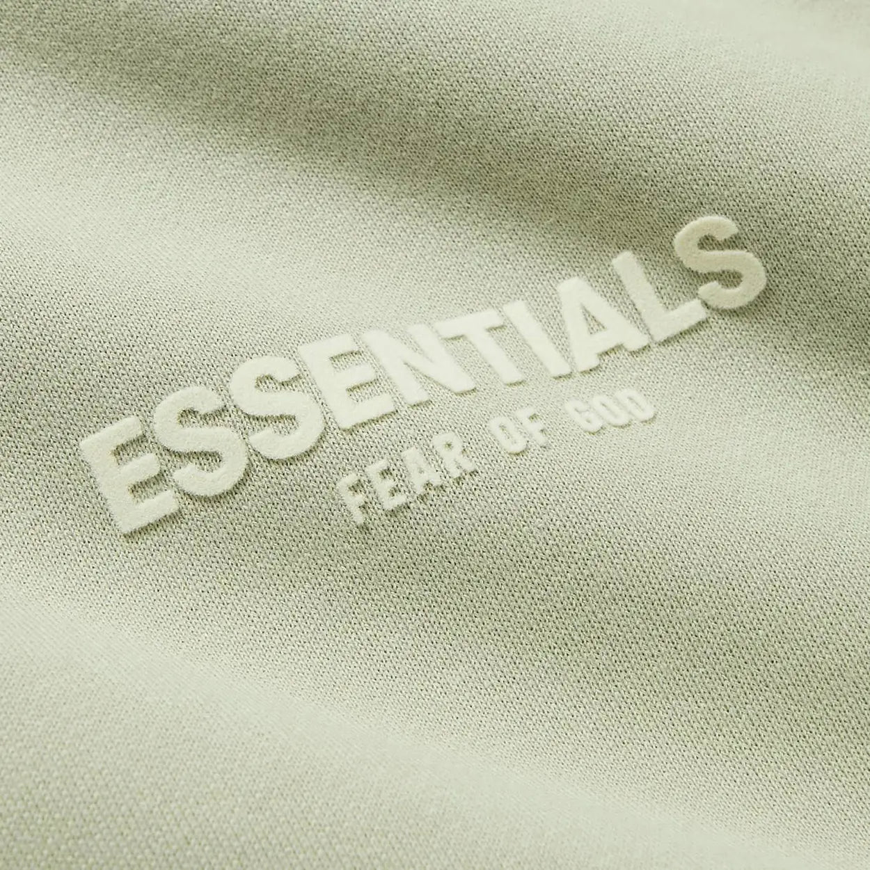 From SS22, Fear of God Essentials' Essentials Crewneck is printed with the brand's logo on the chest, with additional branding in a rubberized patch on the nape. It's crafted from cotton-rich fleece in a green colorway the label refers to as 'Seafoam' and features raglan sleeves.