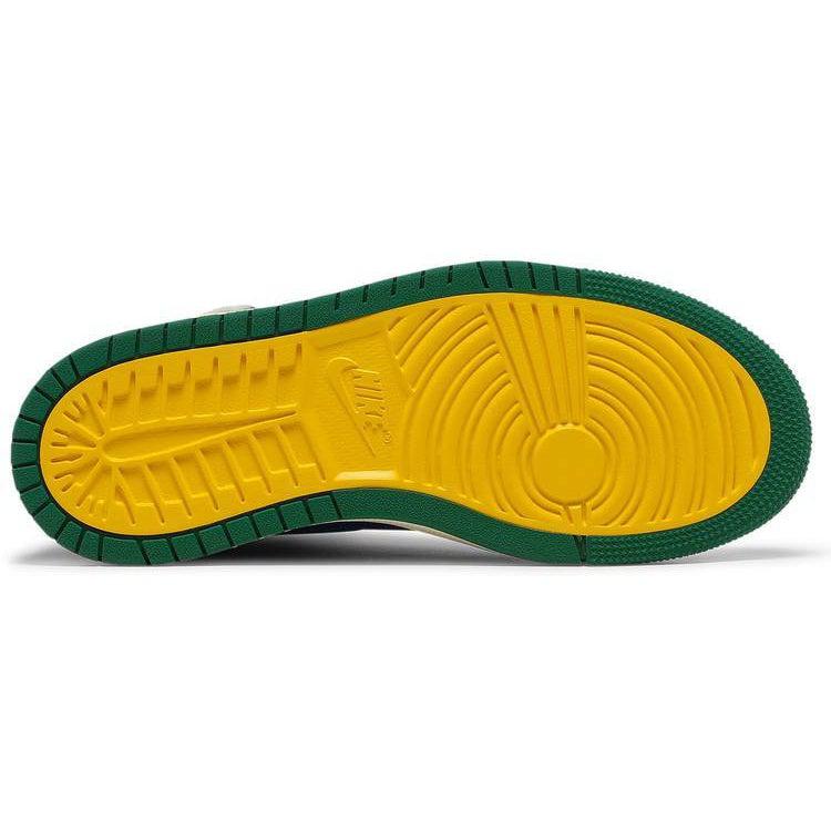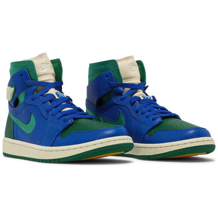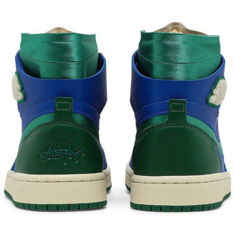 The Aleali May x women’s Air Jordan 1 High Zoom Comfort ‘Califia’ is drawn from a larger collection designed in partnership with the LA-based model and stylist. Inspired by May’s time with her high school drill team, the high-top features a leather upper in royal blue and pine green. Unique details include chenille Wings branding, an ‘A’ logo on the lace keeper and May’s signature engraved on the left heel. Additionally, green satin is utilized on the high-cut deconstructed collar and cut-out Swoosh. The rubber cupsole houses foam cushioning with a top-loaded Zoom Air unit for enhanced responsiveness.