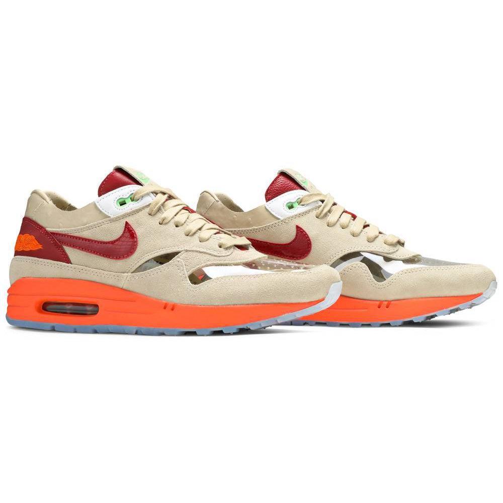 The 2021 reissue of the CLOT x Nike Air Max 1 ‘Kiss of Death’ revives a fan-favorite collaborative colorway initially released in 2006. Like the original, the retro runner is marked by a deconstructed tan suede upper with transparent paneling on the toe box and a scaly texture on the Swoosh. The heel overlay undergoes a color flip, featuring an orange CLOT logo against a red backdrop while the translucent rubber outsole reveals a reflexology-inspired graphic in a new multicolor design.