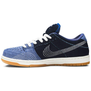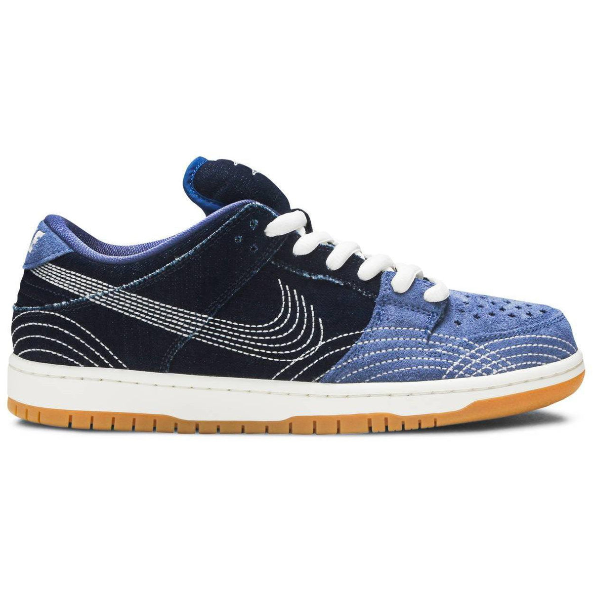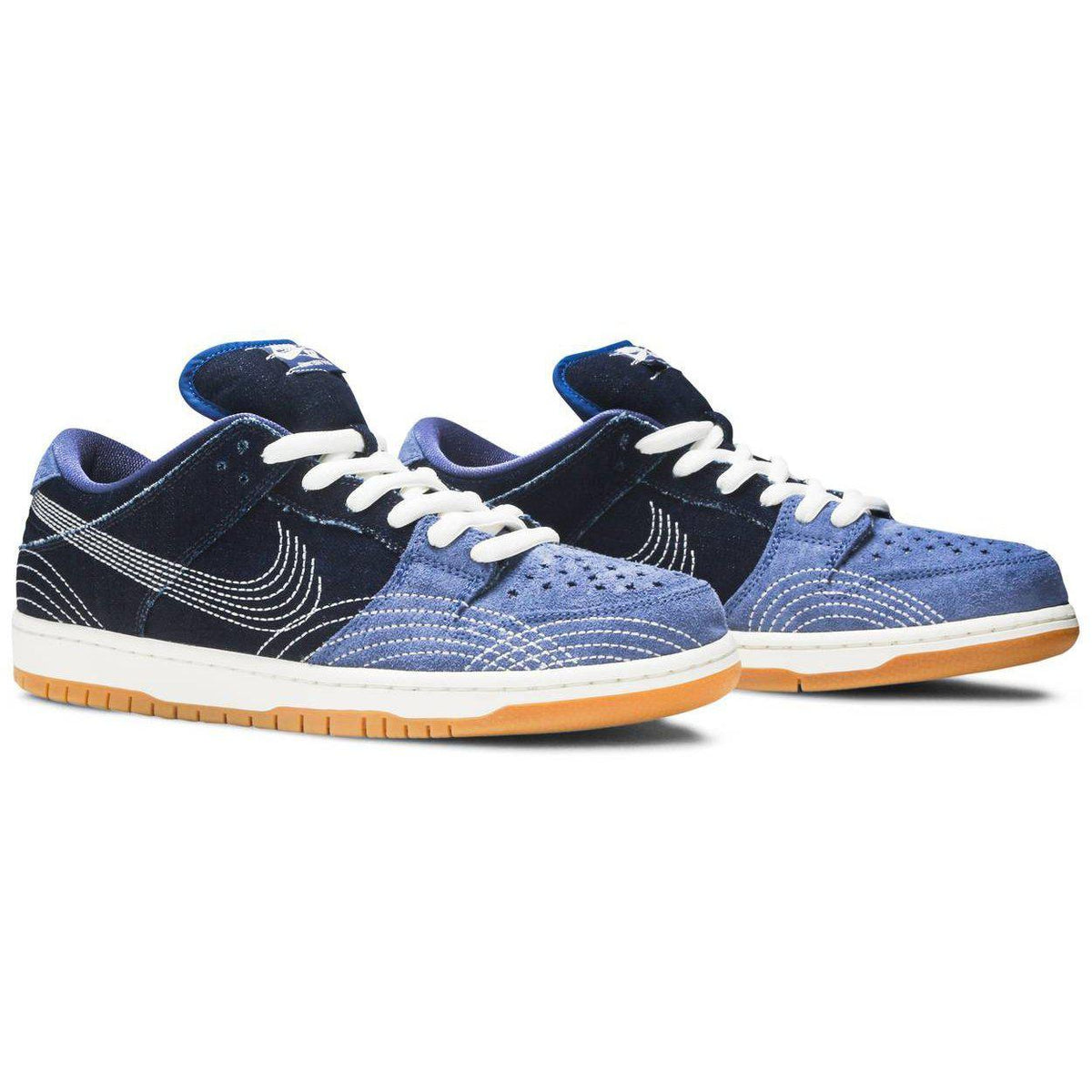 The Nike Dunk Low Pro PRM SB ‘Sashiko Pack’ features a unique design inspired by a traditional form of needlework embroidery that originated in Japan. Decorative stitching is liberally applied throughout the upper, built with a combination of blue suede and dark indigo denim. A stuffed tongue offers a snug, comfortable fit, while the foam sockliner packs a Zoom Air unit in the heel for impact absorption. Underfoot, a gum rubber outsole provides grippy traction.