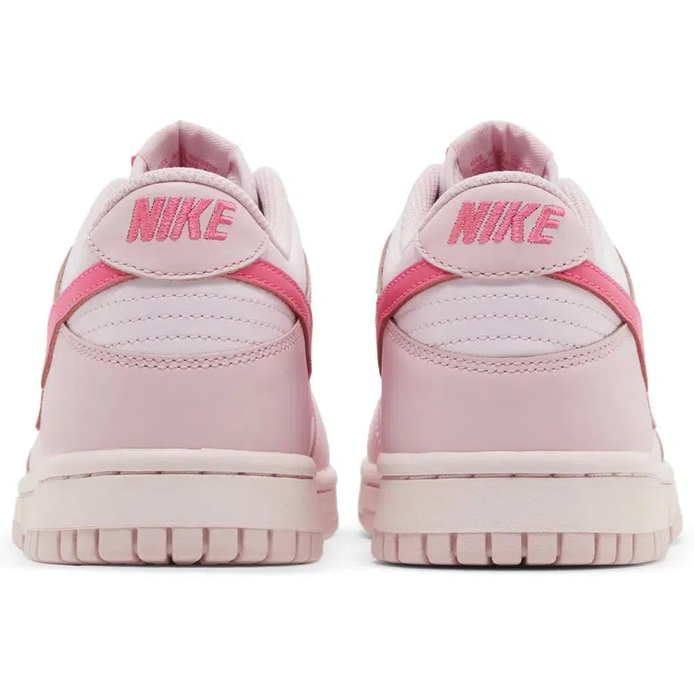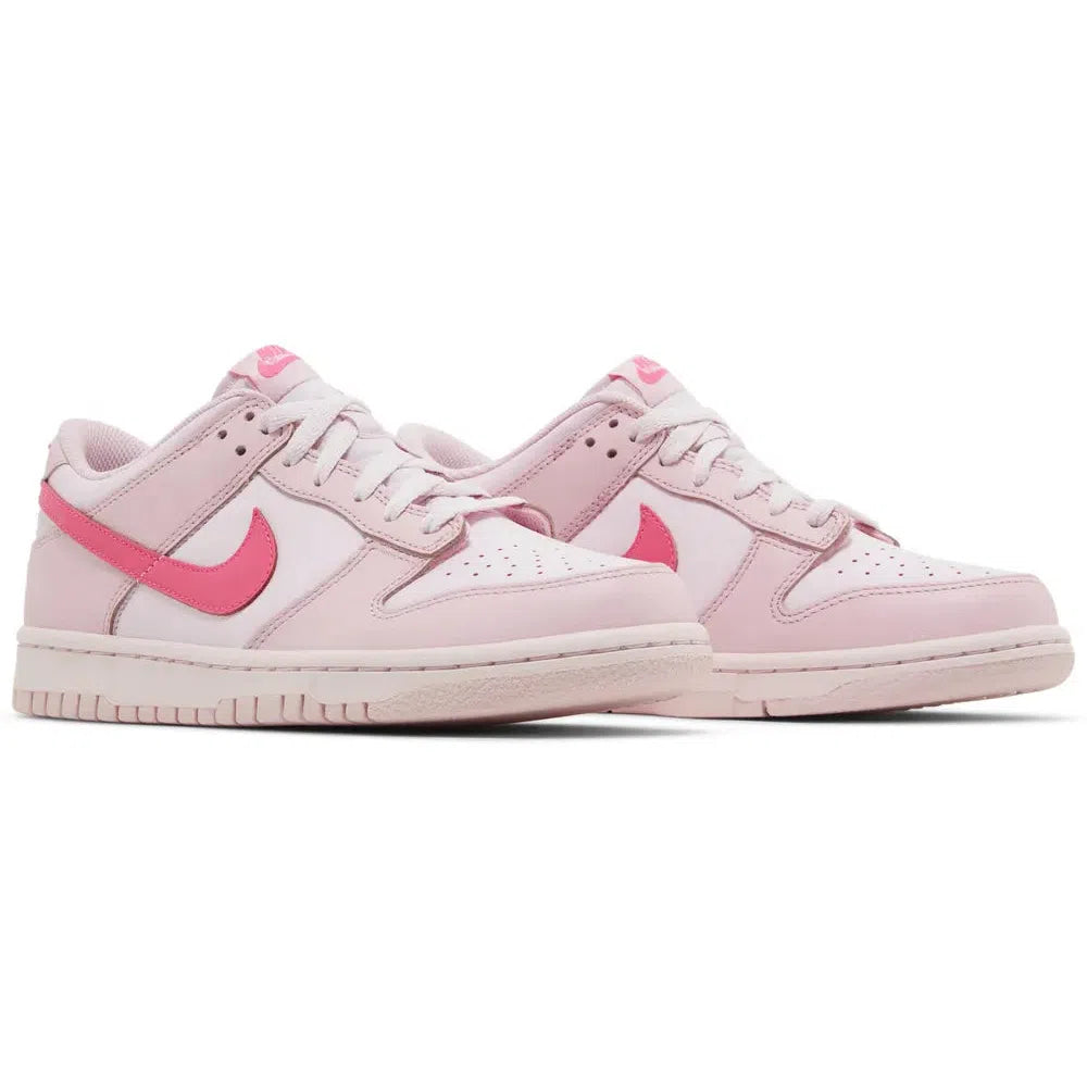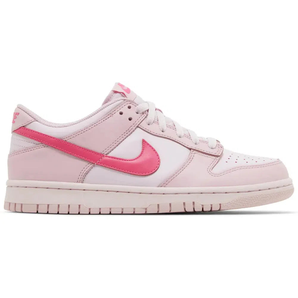The Dunk Low GS 'Triple Pink' also known as ‘Barbie’ refreshes the classic style of the retro Nike basketball shoe. The sneaker's leather upper is constructed entirely from a light pink base and overlays. Nike branding is accented in hot pink across the Swoosh, tongue tag, and heel. A breathable nylon tongue provides comfort while the rubber outsole anchors the build.