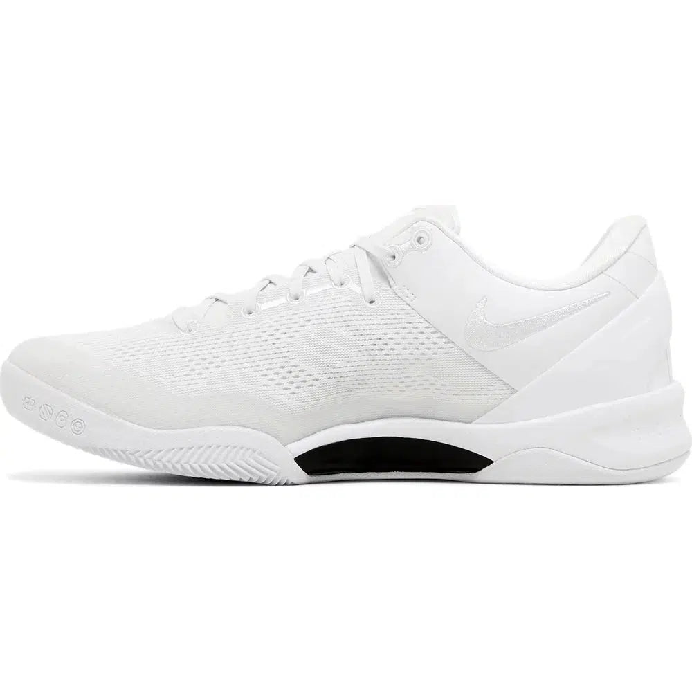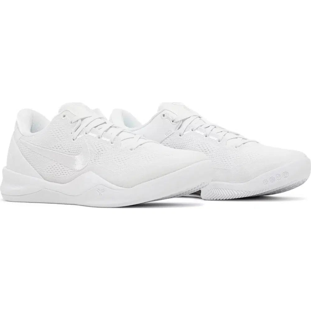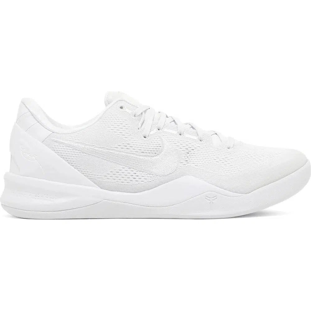 The Nike Kobe 8 Protro 'Halo,' also known as the 'Triple White,' brings back a retooled version of Kobe Bryant's eighth signature shoe in a blank-slate finish.. Designed by Eric Avar, the low-top features an all-white engineered mesh upper with tonal embroidered Swoosh branding. Kobe Bryant’s signature is etched on the external heel counter, while the athlete’s personal logo decorates the tongue. Performance benefits include a drop-in React midsole and carbon fiber shank. Underfoot, a herringbone-tread outsole delivers stop-and-go traction.